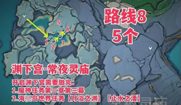 8、渊下宫5个,采集路线如下: