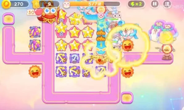 《保卫萝卜4》是一款考验资源配置的即时决策游戏。小编暗中观察发现,这关的萝卜币就像双十一红包——得掐着点儿花在刀刃上。开局太阳花和船锚的黄金组合只是前戏,等障碍清空后全场炮塔开派对那才叫壮观。