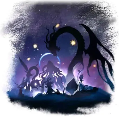 在奥博洛斯看来,生命是虚空海洋中明灭的浮藻,终将随着诞生它们的星辰归于黑暗–这片黑暗就在祂的口中。