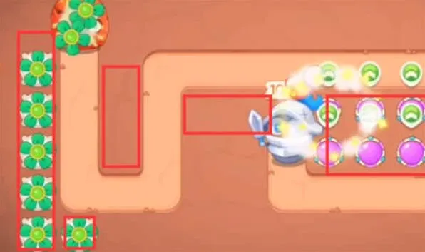 2、开局放置风扇清怪的同时开图,有钱之后在后方放置魔法球开图补漏。