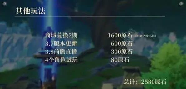 综合计算,3.7版本的活动玩法至少可以获得2260原石,数量与3.6版本基本一致。