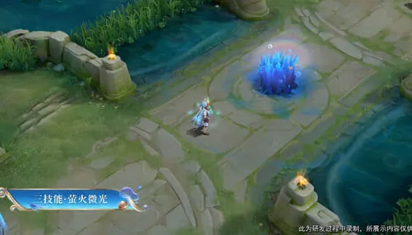 一技能大家仔细观察,除了蓝色的技能特效外,蓝色的泡泡,地上还有一个大大的海舵的图案。萤火虫如果是治疗队友的话,是蓝色的泡泡,如果攻击敌人的话,就是红色的泡泡。