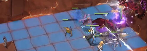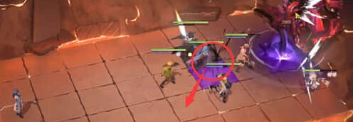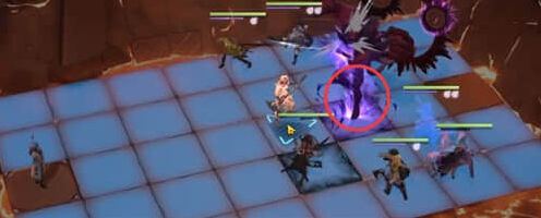 2、然后boss醒了之后会释放第一个技能,地上长手掌,注意移动离开紫色的格子。
