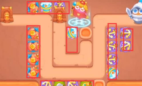 1、这一关可以使用的炮塔是:船锚、泡泡塔、鞭炮、普通炮塔,我们主要用船锚和鞭炮输出。