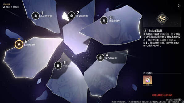 关键星魂直接看吧,个人认为比较关键的就一命和六命。战技本来是会把在场的全部反击标记给清除的,一命之后不会清除可以让史瓦罗先生后续追加更多的伤害。六名的话是队伍中其他人受击后,史瓦罗先生有50%概率追加攻击打上反击标记,并且终结技强化反击可以生效三次。