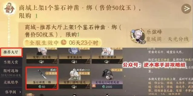 特别注意:有个别区服开的是50纹玉特价绑凿,记得去推荐大厅找到购买