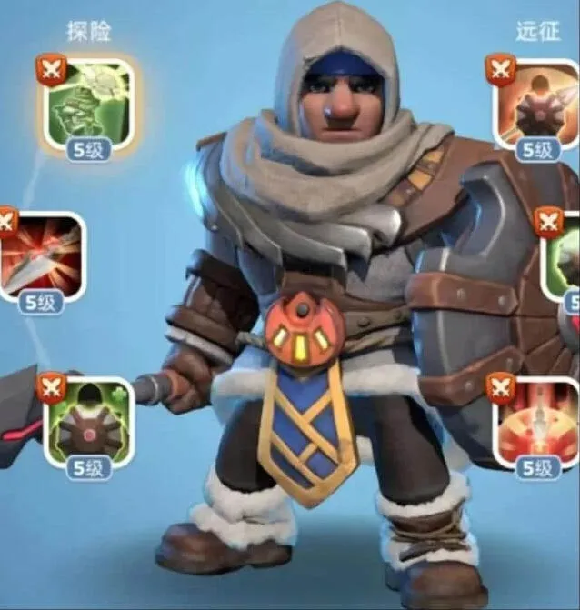阿赫摩斯:遗物信念增友攻,守护者誓血更厚。点评:阿赫摩斯专武探险守城皆益,强化队伍输出。