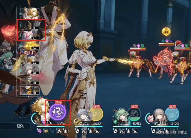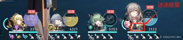 记忆主:开局战技召唤迷迷,战技点充裕的时候战技给迷迷充能,迷迷充能100%可以给阿格莱雅拉条;