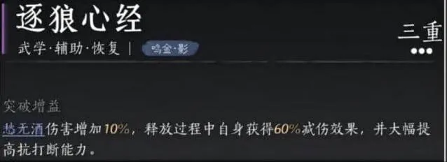 3神龙吐火/太白醉月:释放过程15%减伤,还送你强韧,除了红光金光无法打断你。神龙吐火4重时,会变成40%减伤,虽然我们也不需要这么高。