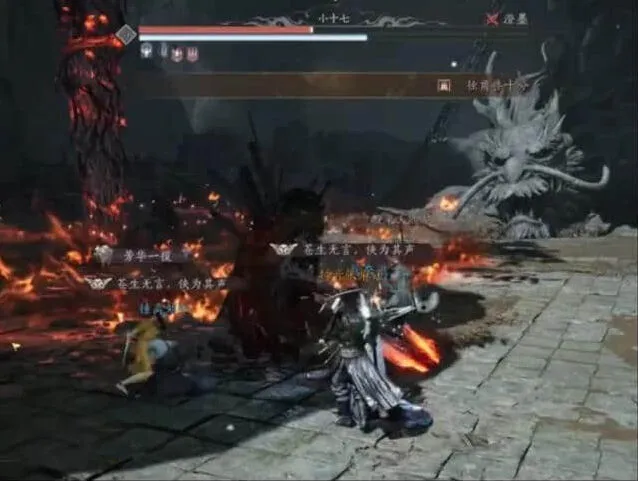 最后boss会召唤两把巨大火箭,火箭周围会有火圈儿,把boss引到圈外起火即可。