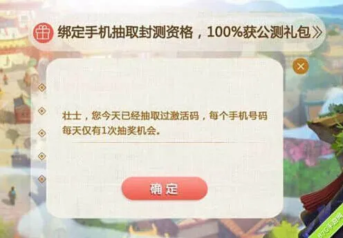 现在登录《梦幻西游》手游官网,绑定手机号码,就可以轻松获得公测礼包,并有机会抽取封测资格,每天都有一次机会。