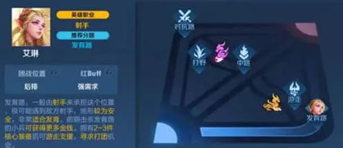 艾琳作为一位需要有一定前期沉淀的射手,在输出方面,并不像鲁班七号与后羿那样的“呆射”,而艾琳无硬控唯一的控制技能便是2技能的减速,所以具体的输出方式便是以消耗加拉扯为主。