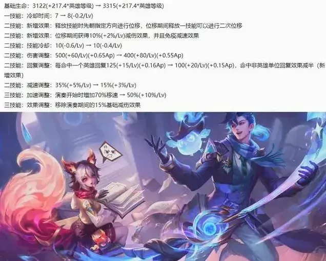 2、9位英雄调整;