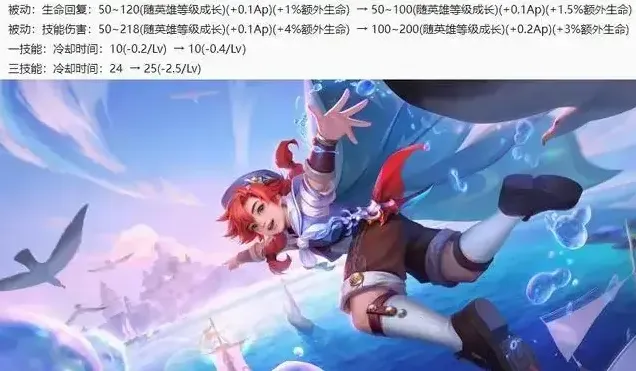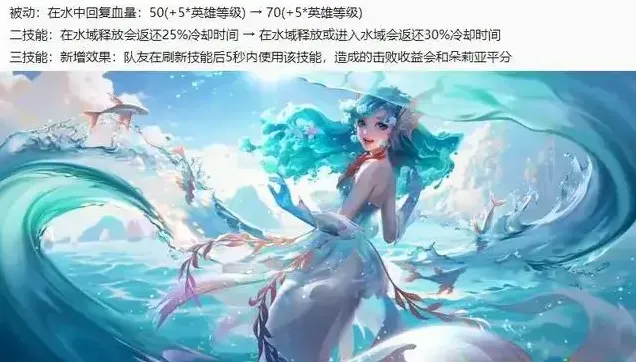 水中回复增加,水中返还更多CD,大招新增平分目标队友的击败收益。