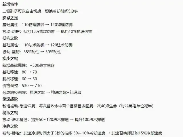 抵抗之靴调整:法防增加,韧性降低。