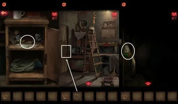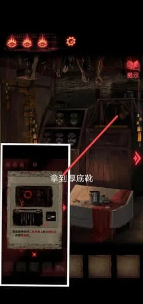 13、依据神龛书上的内容,口红点击摊子,把绳子全部涂红,坛子会破碎,掉落半张照片。