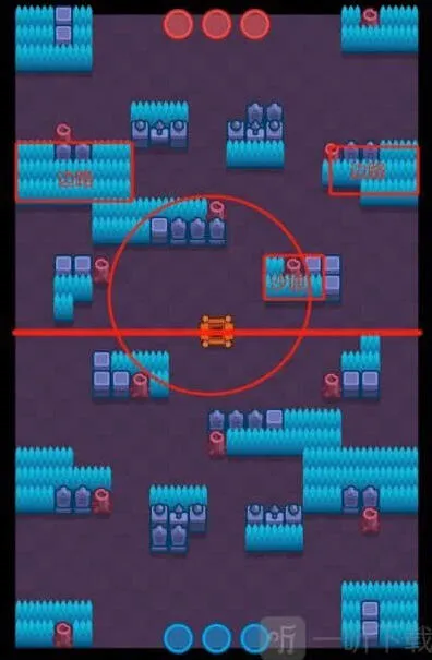 3、放完大招后躲到红框中,继续蓄势。