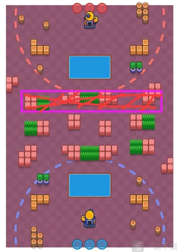 2、公牛的大招充好后,去把敌人的掩体破坏掉,帮助队友输出;
