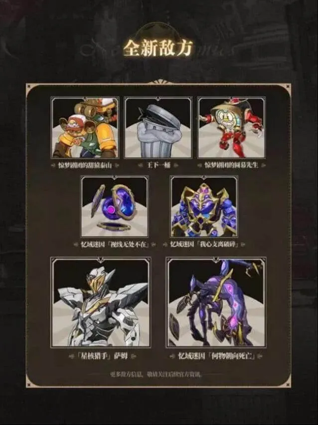 相比起贝洛伯格的各种裂隙生物,还有仙舟的魔阴身,匹诺康尼的新敌人就显得和蔼可亲了。不管是像发条玩具的猩猩泰山,还是垃圾桶成精,却有着霸气名字的“王下一桶”都有种让人眼前一亮的感觉。