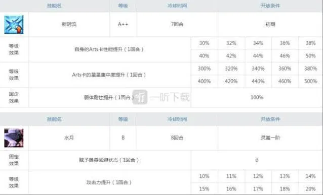 2技能的话,我们可以看到这个加攻幅度实在是偏低,同时也只持续一回合,所以在绝大多数情况下这个技能是留着闪避拿来应对敌人的高伤技能或者宝具的,在柳生的3个技能中2技能的升级优先度最低。