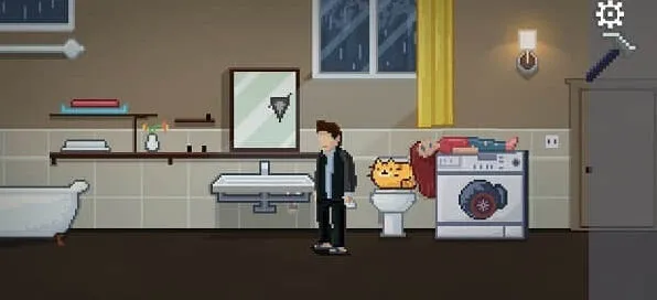 在厨房找到剪刀,去书房把猫抱走,进入浴室,用剪刀把妻子身上的纸剪下,将橘猫丢入地上的水中,选择黑猫。
