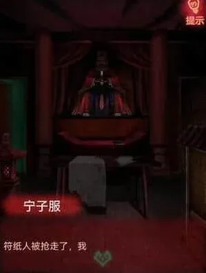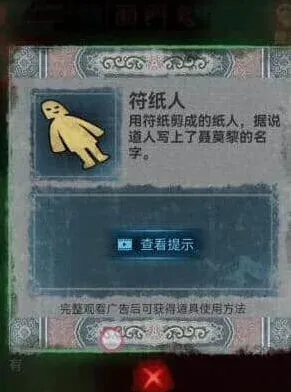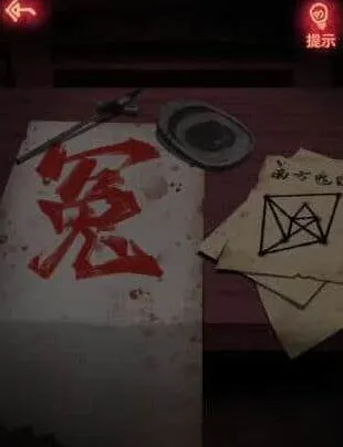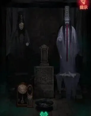 11、我们到城隍庙左门,拿令牌获得提示,根据提示调整时钟即可获得符纸人,我们按步骤把符纸人放中间案台上点击中间画写状子。