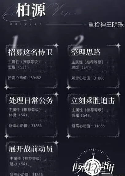 《世界之外》是一款恋爱剧情游戏,通关需要多维度发展。小编研究柏源心想事成这条支线时,灵巧、感知、思维、体魄和魅力全都要照顾,规划过程像在搞一个多目标决策。范围跨度不大,小编觉得均匀提升比重点突破更有效果。感兴趣的用户们跟着小编一起看看吧!