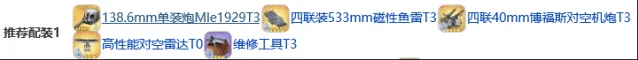推荐理由:理论高伤配装,实际上凯旋炮还轮不到天狼星来装,故选择金高平作为下位使用伤害相差不大,天狼星不使用轻巡炮作为主炮(伤害会很低)。设备可以发挥其防空优势使用金防空也可以按需使用灭火器等防装。不推荐携带弹链彩雷这类增伤设备。若想提高伤害可以增加航母数量。