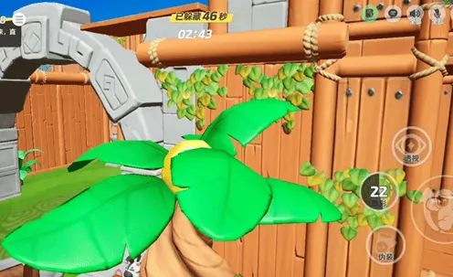跳跃的时候容易掉落,建议变成更大的物体,这样会更稳,靠近大树的时候二连跳,缓慢移动到树顶最低点,方便隐藏视野。
