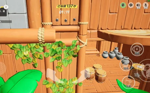 这里变成和石柱相似物体就不容易被搜捕者抓到。