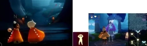 第五个动作:是“捉迷藏”动作。是在雨林的第二个图河中间有个洞口,进去后就能看见蓝光跟着蓝光走,看不见星星在哪就直接对着自己的角色点击一下就有蓝色的标记,跟着走就好了。(动作可兑换:一个蘑菇头发饰、爱心1颗、白色面具1个)