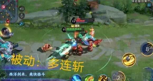如下图所示,夏洛特使用二技能,迅速的进行了一段位移,同时对敌方扁鹊造成了数次伤害,自身的buff栏当中也叠加了一层被动,这便是二技能的效果。该技能的伤害一般,然而具有位移效果,同时技能CD也很短,目测在后期可频繁使用以实现战场的切入切出。