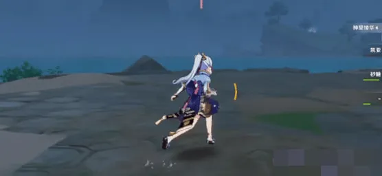 2、从地图找到雷暴区域的方向,从出发点开始,不断的向雷暴地区靠近,可以通过游泳的方式。(开始选用神里,因为这样的速度会快一些)