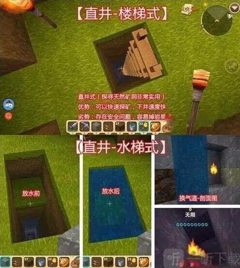 但直观一些。水梯省材料一些,但是有点注意,挖的时候,每10格左右,在旁边挖两格换气用。