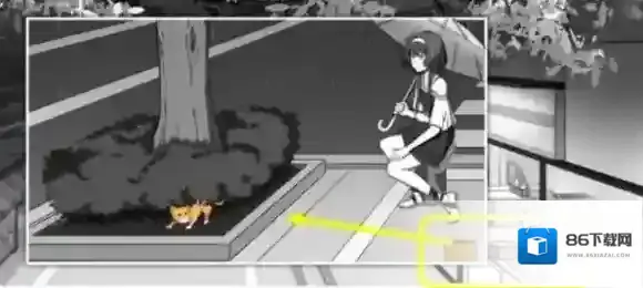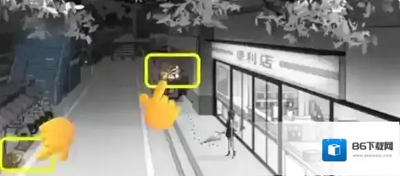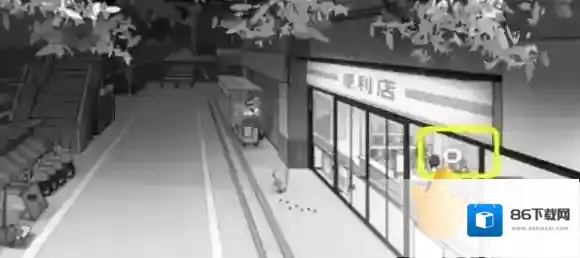 3、点击女主身旁的猫罐头,再点击便利店门口的小猫。