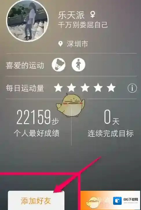 3、在这里可以看到自己住的地方,使用这个软件的用户每天步行情况排行,点击一个想要添加的用户。