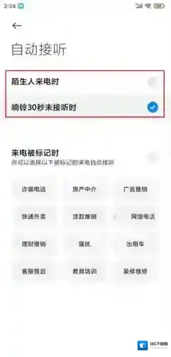 5、选择触发AI自动接听的条件:陌生人来电、响铃30秒未接听,还可以选择接听到被标记的来电自动接听;