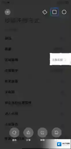 6、选择手势之后 ,根据选择的手势触发区域截屏,默认截屏的形状为方块,可以在右上角选择形状,还可以在下方选择重画、分享、编辑、保存等等。