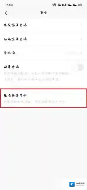 4、在安全中心选择账号安全中心;