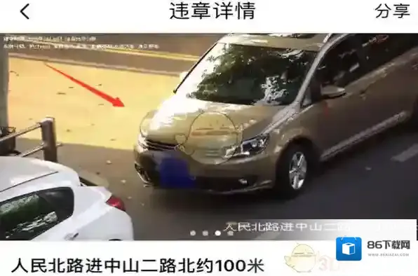 6、进入到该违章的详细界面以后就可以看到自己车辆违章的详情以及照片了。
