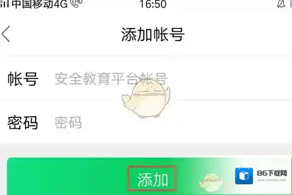 5、在出现的界面中输入需要添加的账号和密码,点击“添加”即完成了账号的切换了。