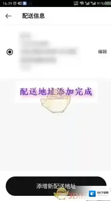 4、打开配送信息界面,点击底部的“添增新配送地址”。