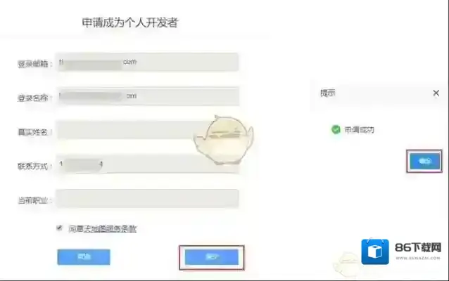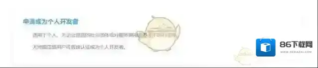 2、个人注册的用户,选择[申请成为个人开发者],点击去申请。