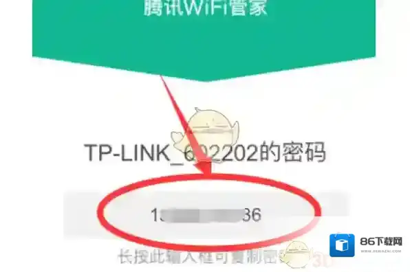 6、这时你需要分享的WIFI无线密码就会出现了。位置即在下图的红圈位置处。