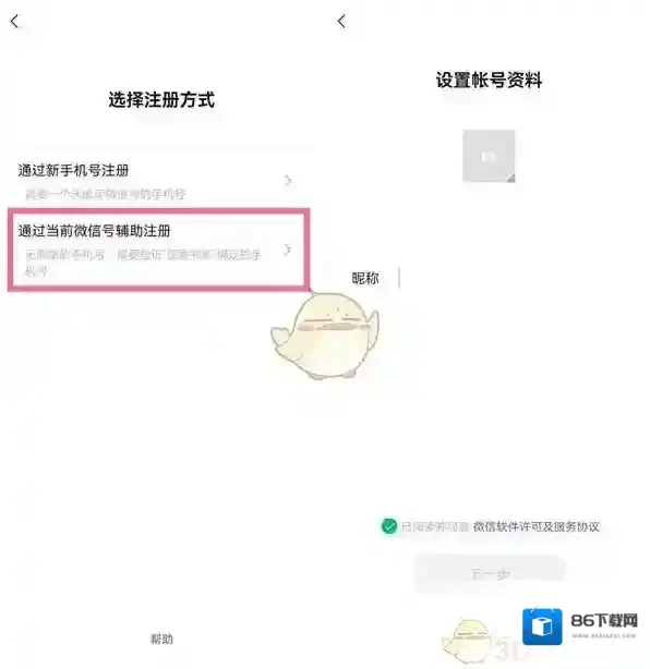 4、选择通过当前微信号辅助注册,通过辅助的微信号手机验证后即可注册。