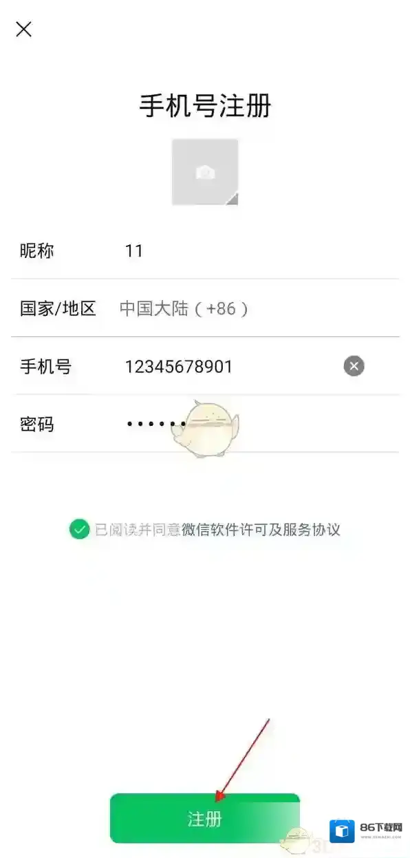 2、输入相关信息,勾选协议,点击注册即可。