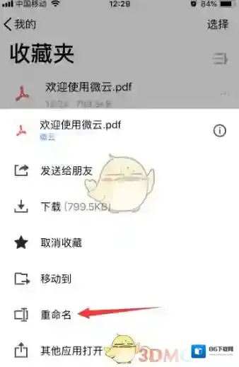 4、点击了更多选项之后,弹出了下拉菜单选中为 重命名 选项