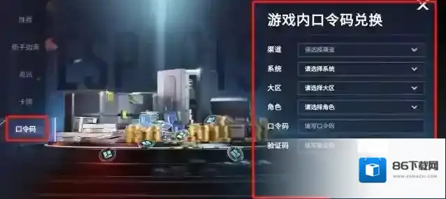 2、在社区界面的左侧玩家可以看到有口令码的选项,点击该选项后在该界面中输入礼包码等信息进行兑换即可,如图所示: