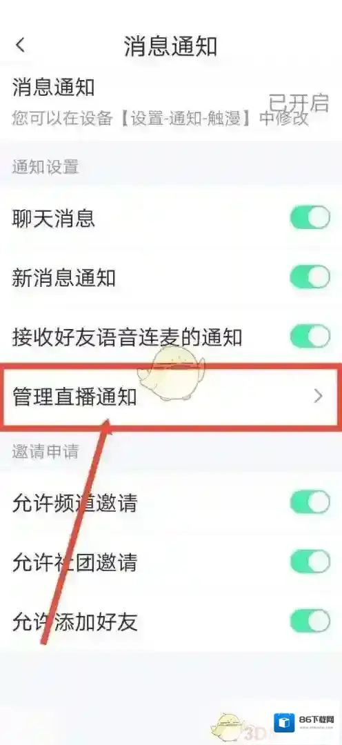 《触漫》直播通知关闭方法 2025-07-28 11:03:49 编辑: 吹散星光 分类: 应用教程 • 阅读: 1003 1、打开触app漫,进入界面然后选择我。 2、找到个人界面点击左上角的设置图标。 3、在设置中选择消息通知。 4、在消息通知中点击管理直播通知。 5、找到允许通知的按钮关闭即可。 本文内容来源于互联网,如有侵权请联系删除。 发表回复 请登录后评论... 登录后才能评论 评论列表 ( 0条)
