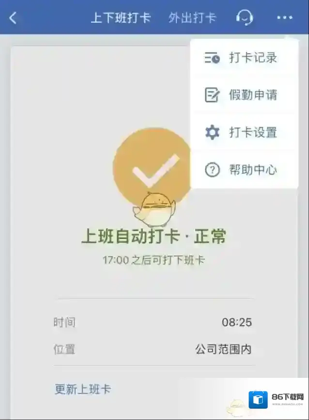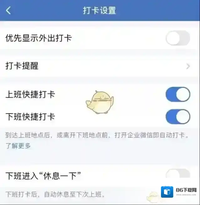 2、接着在打卡设置的页面,开启上下班快捷打卡功能即可。当我们符合企业的打卡规则时,系统就会自动进行打卡,并且会告知我们打卡成功。